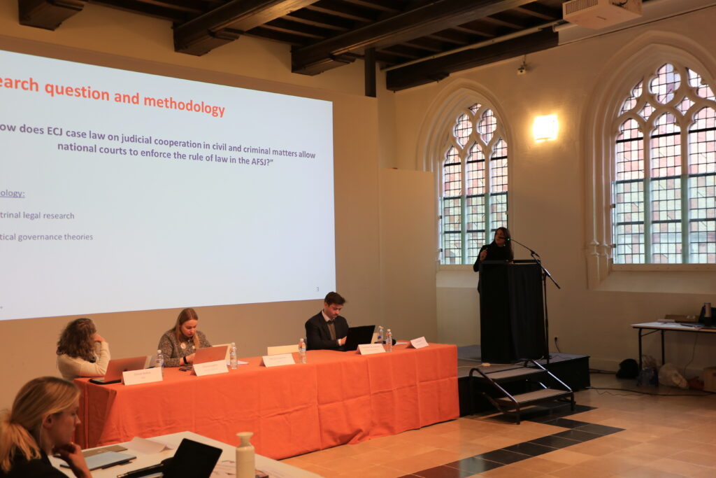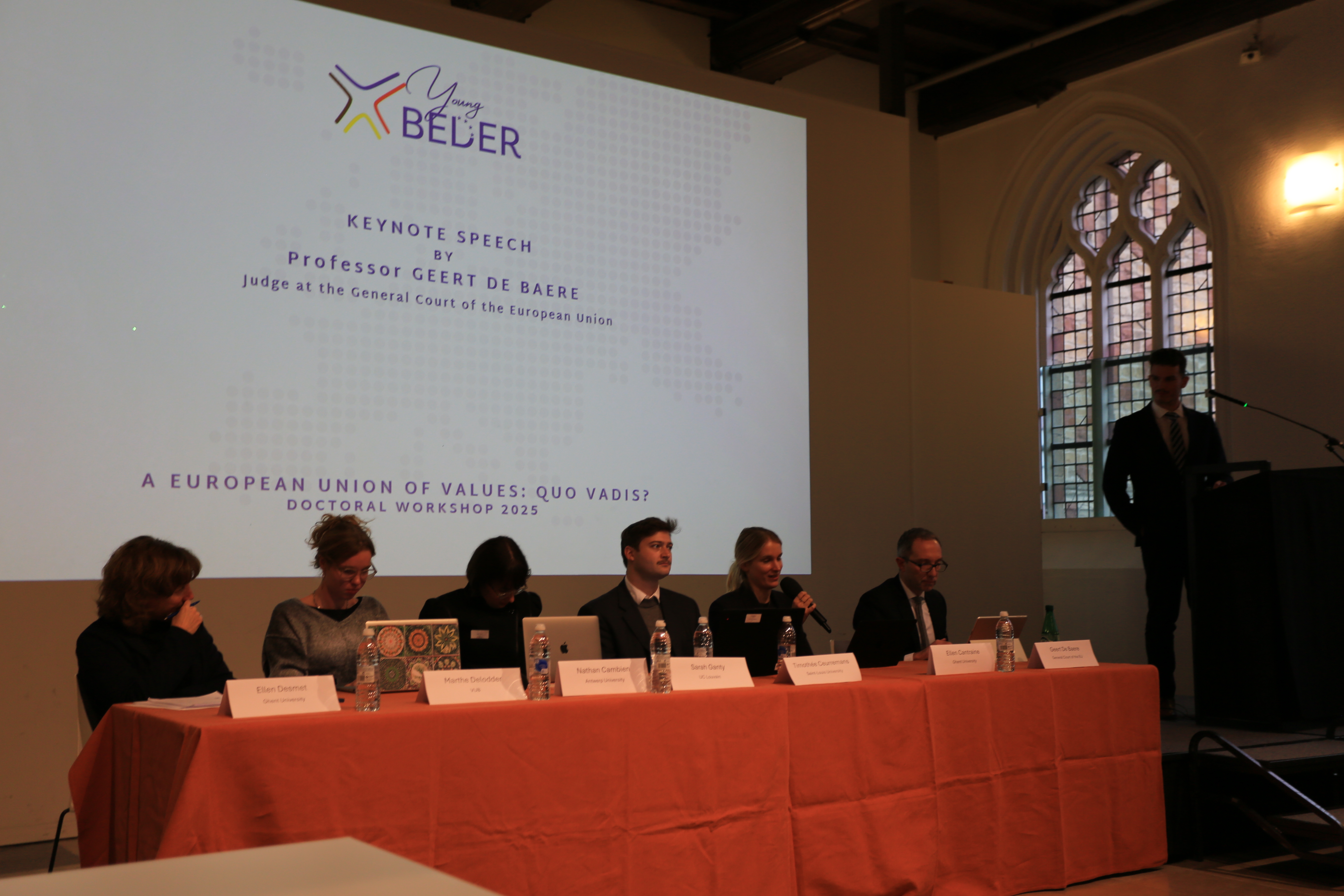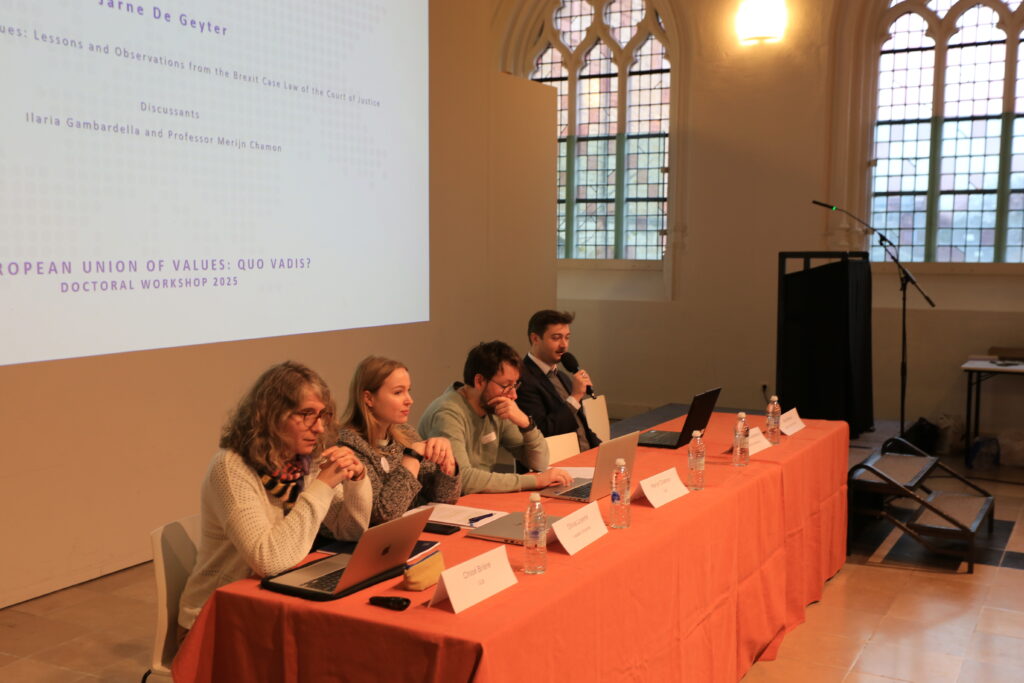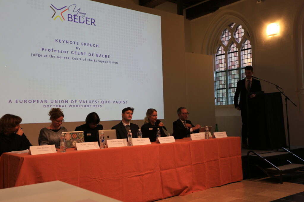 De YoungBeder doctoral workshop “A European Union of Values: Quo Vadis?” was een groot succes! Naast de interessante speeches van Prof. Dr. Geert de Baere en Prof. Dr. Paul Nihoul, presenteerden verschillende doctoraatsstudenten hun paper, wat telkens leidde tot boeiende discussies. De YoungBeder-prijs voor de beste bijdrage ging uiteindelijk naar Emilia Sandri voor haar paper “Rule of Law Capta Ferum Victorem Cepit: Opportunities for Judicial Cooperation to Safeguard the Rule of Law in the AFSJ”. Van harte proficiat en bedankt aan alle aanwezigen!